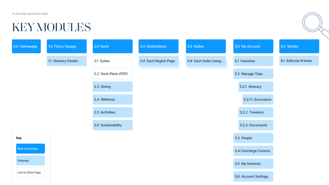 We conducted foundational research to understand the needs of various audiences served by the site, including travelers, their personal assistants, and travel advisors/agents. Using persona based design, we defined the MVP digital experience and roadmap for additional features, including shopping and booking, digital tools to plan your trip, and even the post-voyage experience.