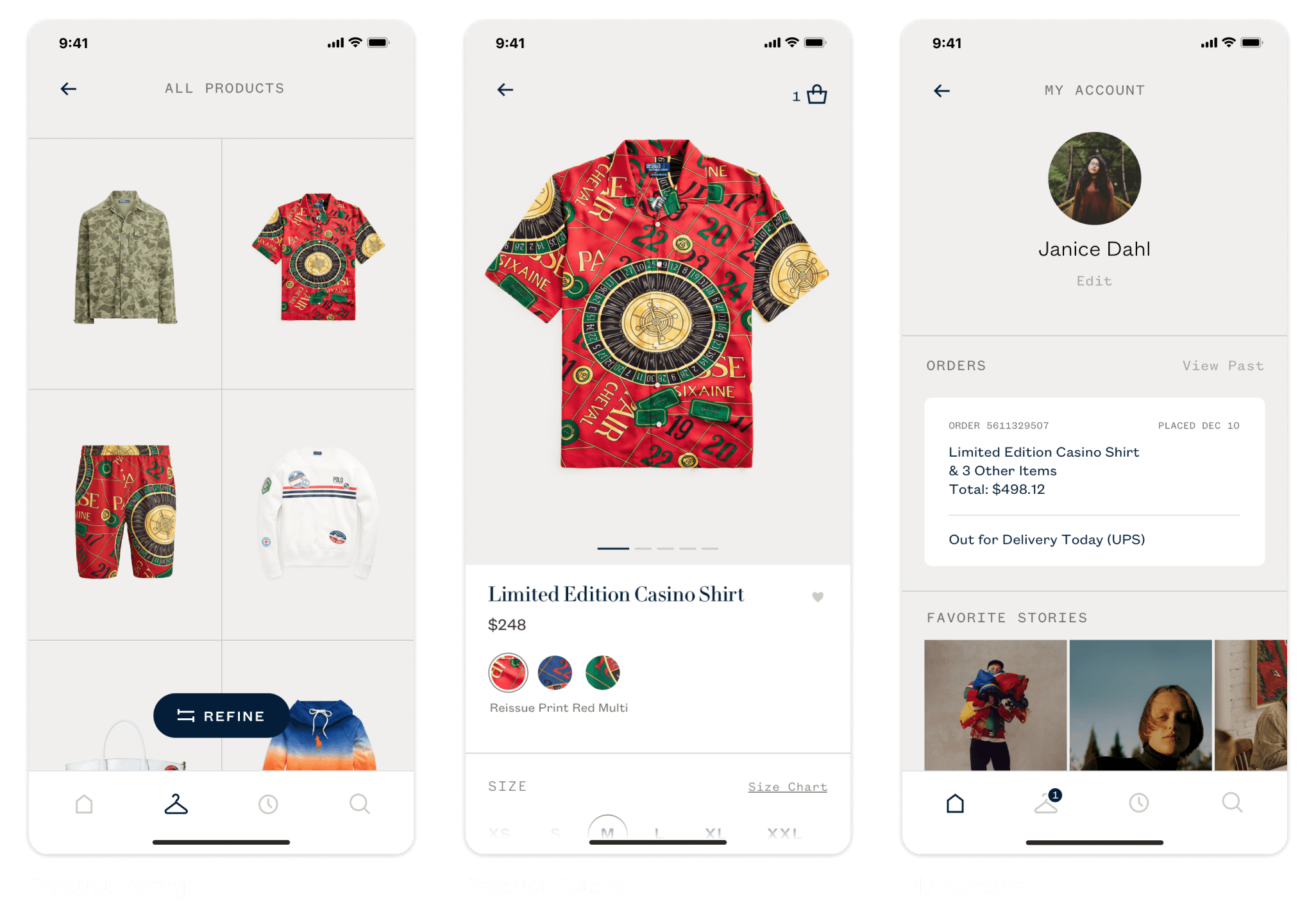 Ralph Lauren has been an iconic fashion brand since launching their first line of neckties in 1967. Since then, the fashion house has gained a following of millions of brand enthusiasts around the world. The Ralph Lauren mobile app helps these loyalists shop the latest collections, and stay engaged with editorial + interactive content. The previous version of the app was outdated and riddled with UX challenges causing low user retention and poor conversion. We partnered with Ralph Lauren to reimagine the app's UX from the ground up, modernizing the shopping flow and rethinking key features like interactive content to keep customers engaged. The new RL app is now available on the App Store and Google Play.